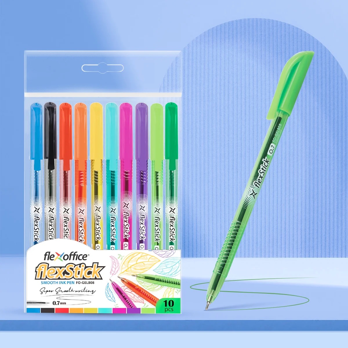 Túi 10 Bút gel B FlexStick Smooth Ink Pen Flexoffice FO-GELB08 – Mực tiêu chuẩn châu Âu